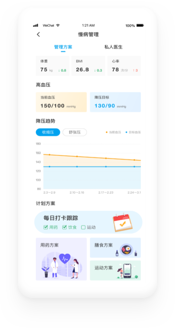 Created for those who are concerned with their health, it is a visualized and highly interactive closed-loop health management platform, aimed at solving the health management needs of users in medical institutions, families and other scenarios, which can improve the health quality of users